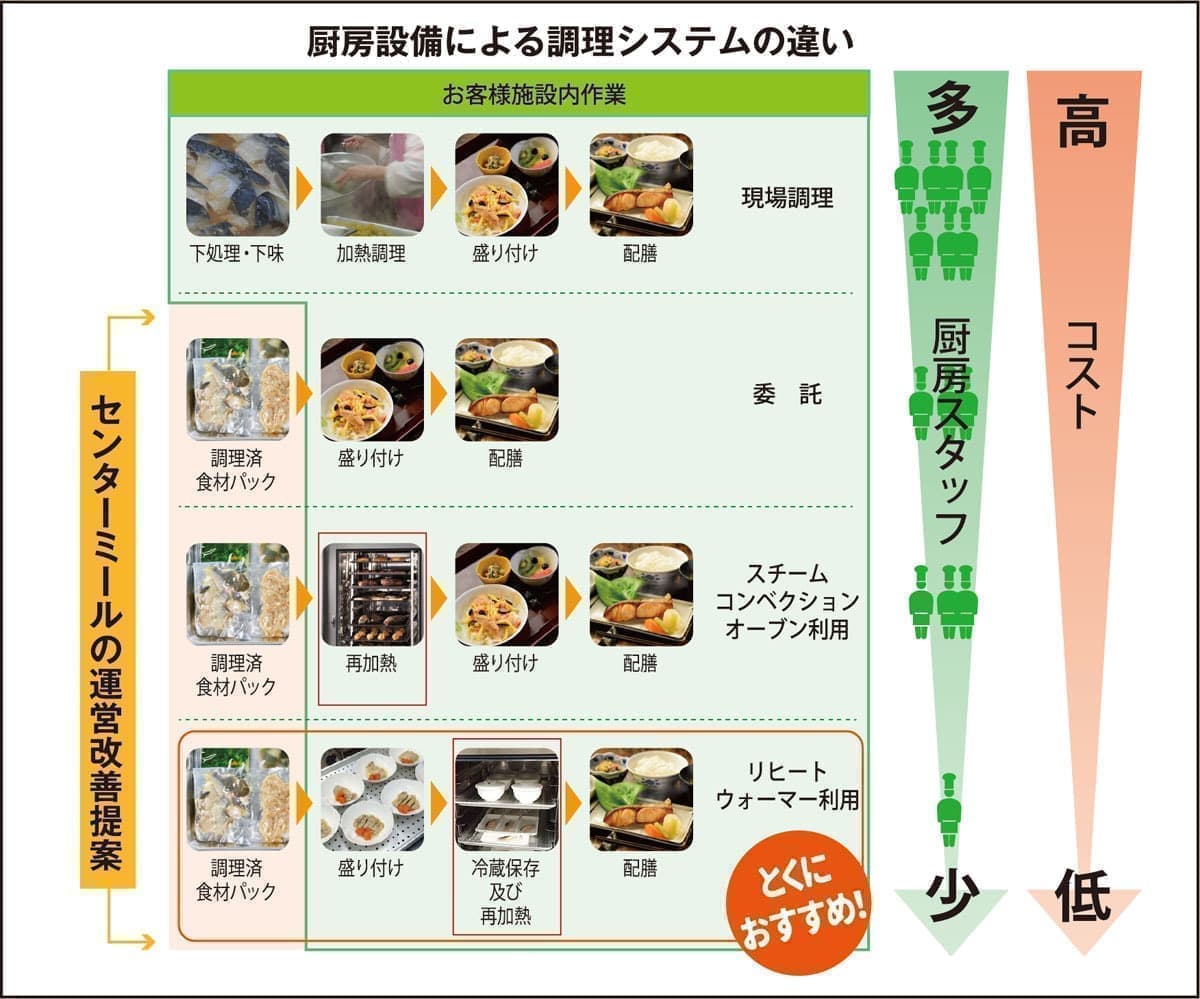 完全調理済み冷蔵食材を温め、盛り付けるだけ。